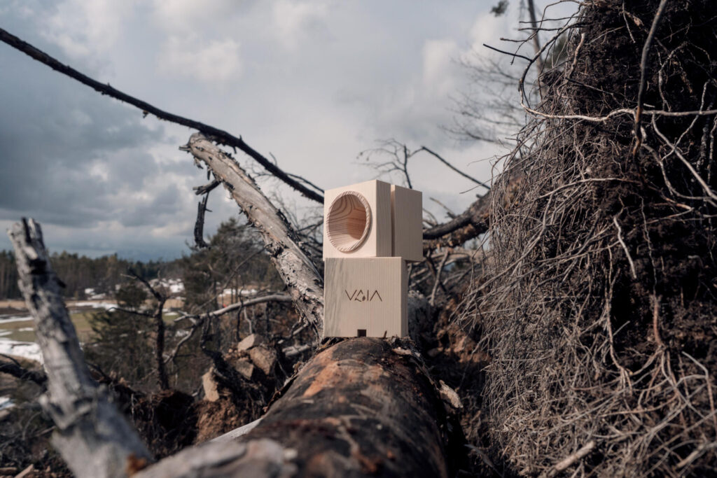Un progetto che unisce qualcosa che è accaduto nel passato cercando di valorizzare qualcosa che ancora non c’è e che, necessariamente, rappresenta il futuro. VAIA non è solo il nome della tempesta che nel 2018 ha raso al suolo 42 milioni di alberi, ma è anche il nome di questo progetto. Recuperare il legno degli alberi caduti che si stava svendendo o addirittura regalando pur di rimuoverlo e crearci un oggetto di design funzionale, con un richiamo chiaro alla sua provenienza e che portasse nelle case un messaggio, una metafora. Una missione impossibile compiuta da tre ex studenti universitari che hanno lasciato i loro lavori per poterla portare a termine, insieme. Un cubo amplificatore per smartphone. L’idea è questa. Il cubo è fatto del legno di quegli alberi caduti, l’amplificazione non è solo della musica ma anche del messaggio di rinascita di cui VAIA vuole farsi ambasciatore, così come la spaccatura che percorre quattro lati del cubo, a ricordare che dalle crisi nascono opportunità. Opportunità come quelle per la filiera del legno locale, dai boscaioli alle segherie fino agli artigiani e ai piccoli negozi locali. Una start-up che è partita dal suo territorio ferito e vuole andare lontano per raccontarlo e portare la sua esperienza.