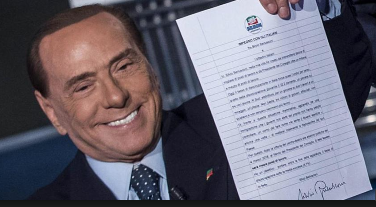 Ieri sera "A Porta a Porta" (Rai Uno), la tribuna politica per eccellenza, si è consumata una "carrambata" che resterà nella memoria di molti: Silvio Berlusconi, ospite di Bruno Vespa, ha rispolverato la stessa scrivania, dalla quale 17 anni fa firmò il patto con gli Italiani, per siglare un nuovo contratto con i cittadini : "Mi siedo con emozione. Questo documento preparato si chiama 'Impegno con gli italiani'", esordisce l'ex premier. "Io Silvio Berlusconi nella mia vita ho creato milioni di lavoro. Di fronte alla situazione drammatica di oggi sull'occupazione un uomo del fare come me si mette a disposizione del suo Paese. Dopo la vittoria del centrodestra il 4 marzo, vittoria che ritengo sicura, io avro' al fianco del presidente del Consiglio l'impegno di creare posti di lavoro. Entro la fine della legislatura il mio obiettivo è portare il tasso di disoccupazione sotto la media europea", afferma l'ex presidente del Consiglio, mentre sigla in diretta nazionale il documento, proprio come fece nel 2001.