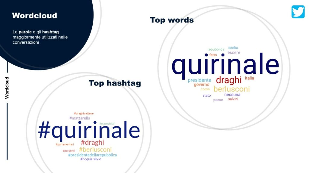 L’andamento generale del comportamento su Twitter in merito al voto del Colle, in conclusione, riflette il dibattito politico e sociale degli ultimi giorni: ogni giorno, sulla base delle notizie che incalzano su vari fronti, dal PNRR alla pandemia, fino agli auspici espressi ieri da Goldman Sachs, riportano sempre allo stesso quesito: Mario Draghi diventerà Presidente della Repubblica sì o no?